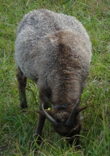 Here we have "TOO". Yes, I know it's silly but it's a play on words. First she is the half sister to one of our ewe (as in two) and we just HAD to have her also (as in too!) She's a friendly little thing---just like her half sister. She's watching me in this picture but wouldn't look up.